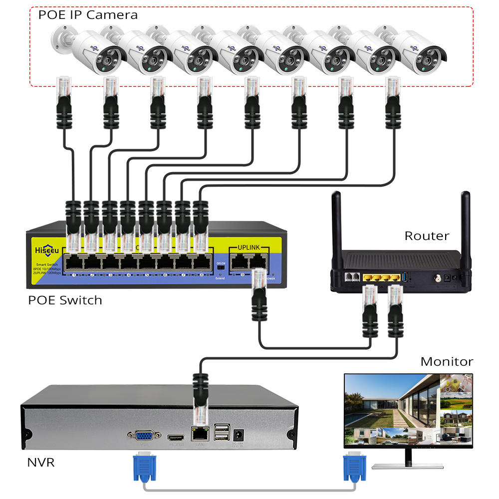 Features :***Transmission rate of Ports: 10 Fast Ethernet ports (8 POE Ports with 2 Uplink Ports) are 10/100Mbps (12+, 36-)******Support to connect with Non-POE IP Camera (need extra 48V POE Splitter to connect) / Wireless AP/ POE Camera***Specification :Switch Capacity: 2.0G