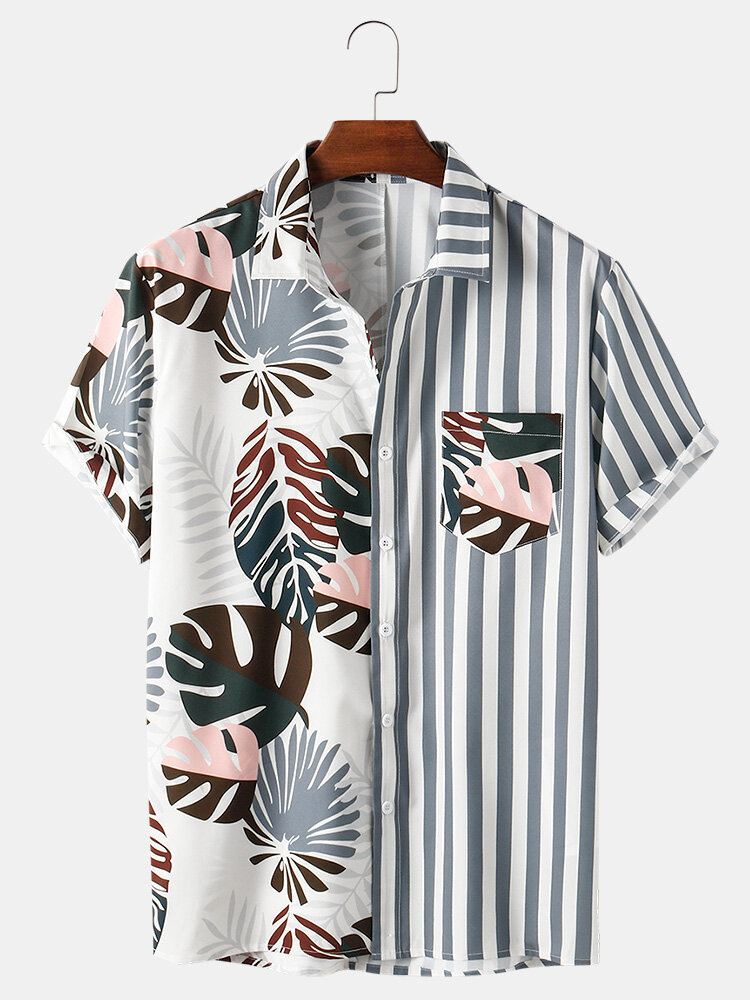 Brand:ChArmkpRDecoration:PocketFit Type:Regular FitMaterial:PolyesterNeckline:LapelPattern Type:Striped,Patchwork,PlantsScene:Leisure,Home,Beach,CasualSeason:SummerSize:XXL,L,S,XL,MSleeve:Short SleeveStyle:Casual,Hawaii Style