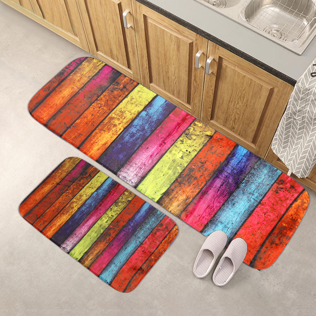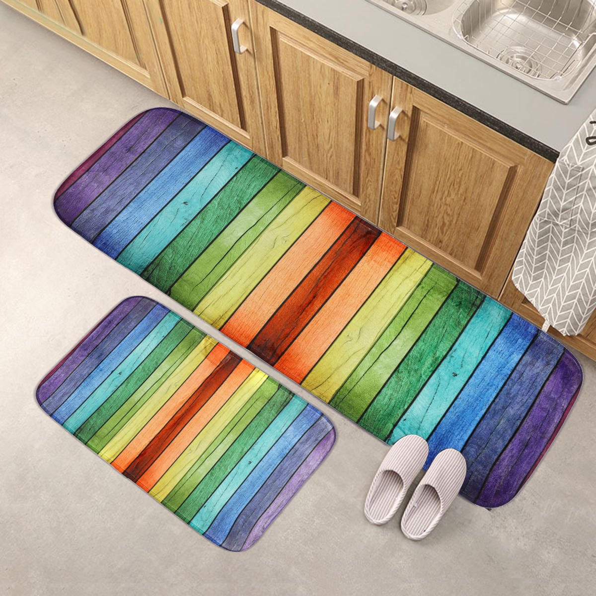 Specifications: Use:Kitchen,Living Room, Bathroom Size: (Large)120*40cm/ 47.24*17.75 " (Small)60*40 cm/ 23.62*17.75 "Gross Weight: Approx. 317g Package Included: 2xFloor Mat