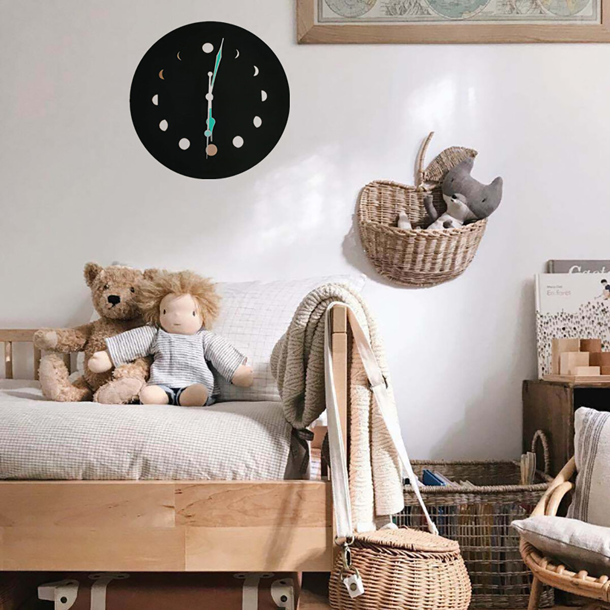 LUMIeRES DE NUIT: Capable d'absorber la lumiere pendant la journee, l'horloge murale brillera dans l'obscurite pendant environ 5-6 heures [Le temps de lueur depend de la lumiere absorbee dans la journee].