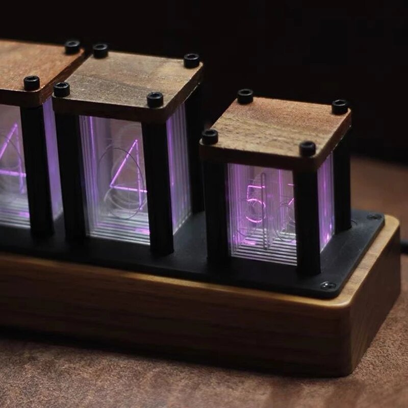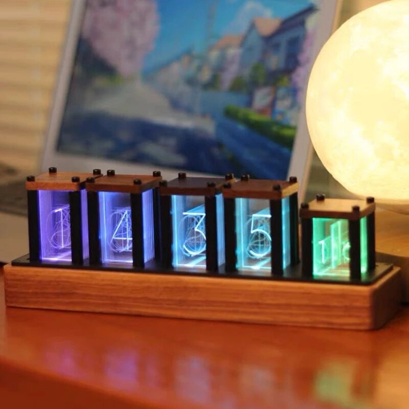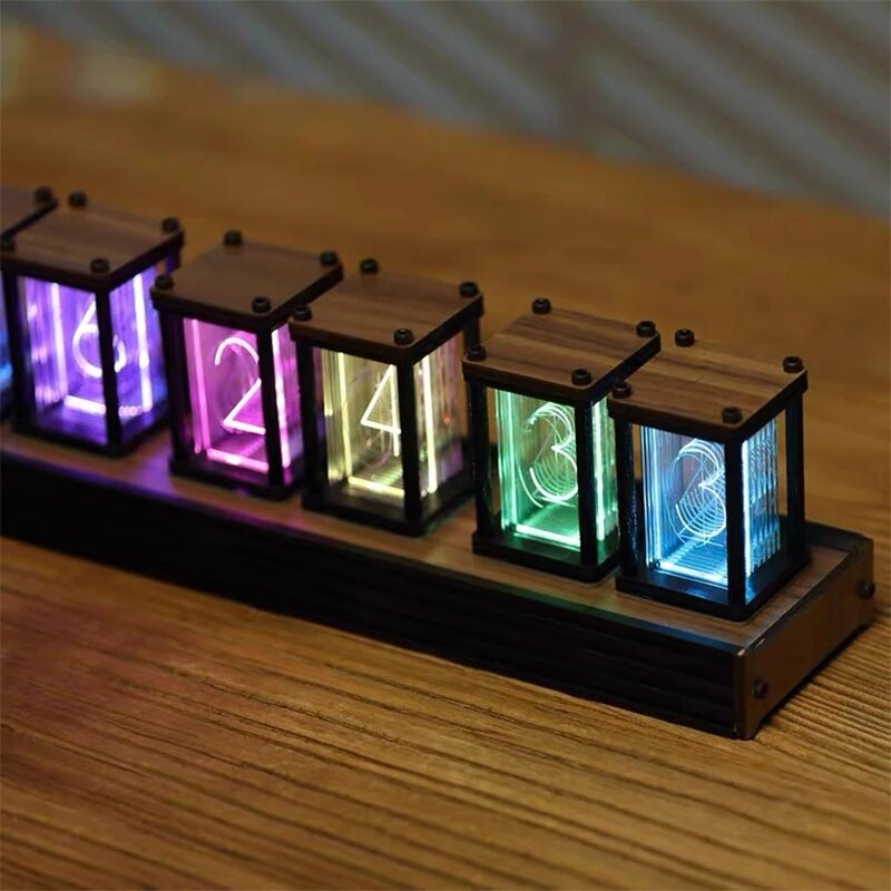 Horloge e tube de lueur imitee rvb Led creatif bois electronique 6 bits IPS horloge e tube Nixie analogique retro lueur – noyer