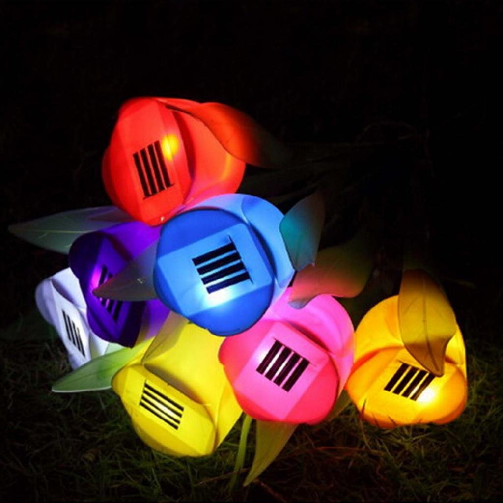 HuntGold 1X Tulip Flower Shape Solar Powered LED Lamp Outdoor Yard Garden Lawn Path Lighting(yellow) quantity