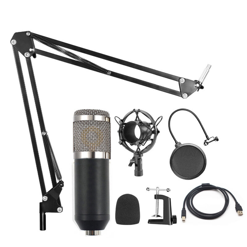 HZM & C BM-800USB Professional 192KHz / 24Bit HD Kit de microphone e condensateur USB e lecteur gratuit avec support de montage – Noir