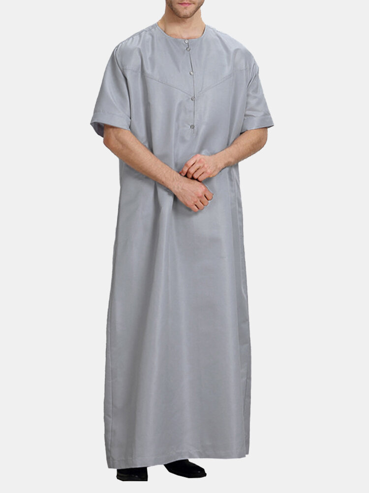 INCERUN Mens Loose Kaftan Short Sleeve Round Neck Long Tops – 2XL White