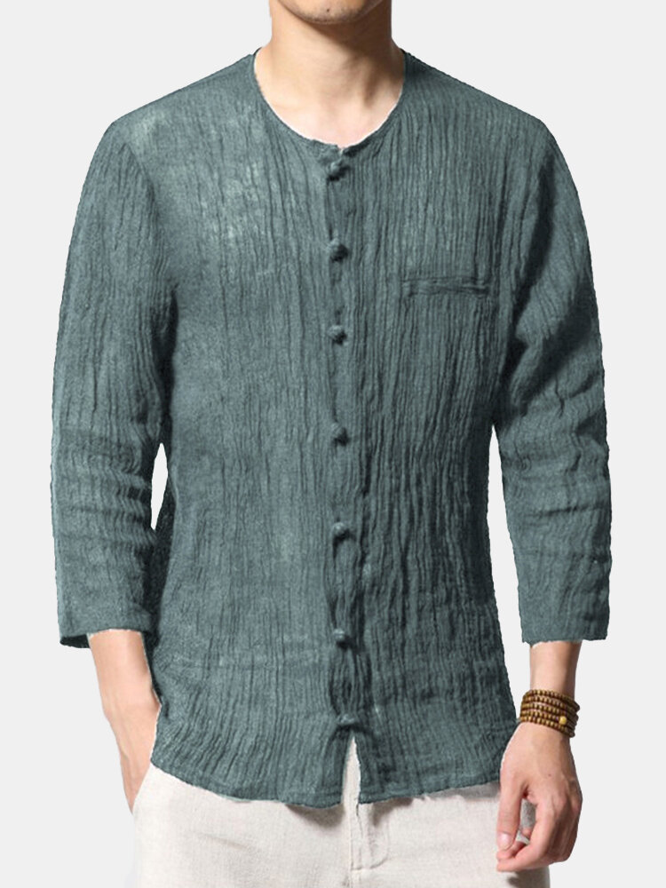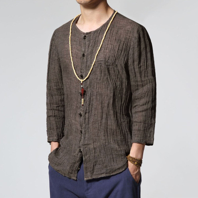 INCERUN Vintage Chinese Button O-neck 3/4 Sleeve Casual Thin Shirts Tops for Men – S Coffee