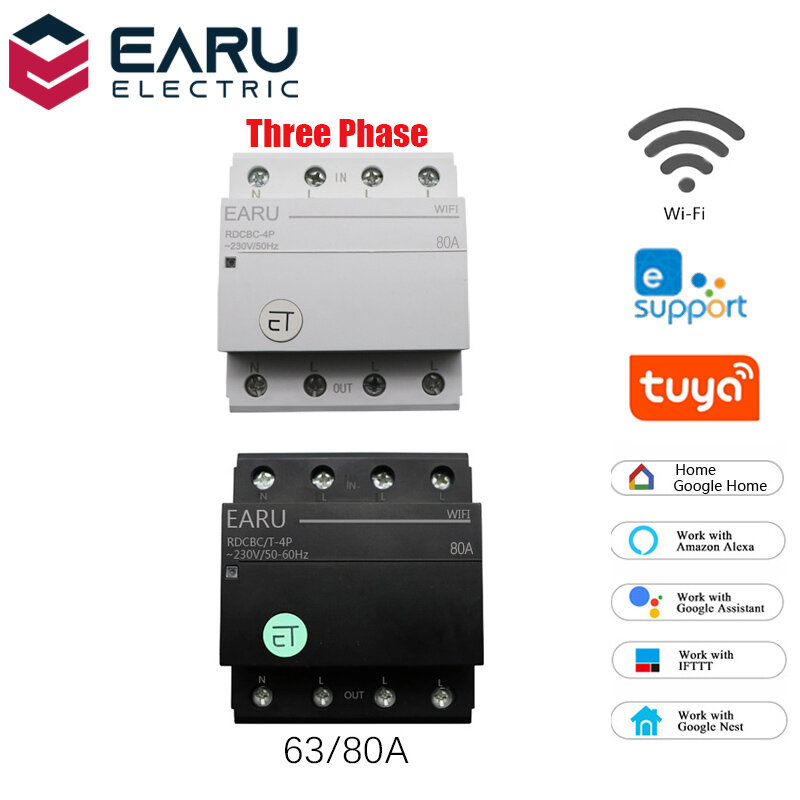 Interrupteur d’eclairage intelligent EARU WIFI 63/80A Interrupteur de relais de minuterie de disjoncteur triphase Telecommande vocale Fonctionne avec l’application Tuya eWeLink Alexa Google Home – Blanc lien ewe 63a