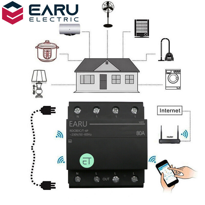 . La description : Interrupteur d'eclairage intelligent EARU WIFI 63/80A Interrupteur de relais de minuterie de disjoncteur Telecommande vocale Fonctionne avec l'application Tuya eWeLink Alexa Google Home Caracteristique : - Telecommande Utiliser avec la telecommande eWeLink APP de partout . Met le calendrier pour utiliser une seule minuterie , repetez la minuterie pour activer / desactiver automatiquement . Lorsque vous quittez la maison, utilisez la scene sur l'application eWeLink pour eteindre toutes les lumieres. - Synchronisation intelligente Vous pouvez regler l'heure d'allumage des lumieres et des ventilateurs au bureau. Mettre en place une heure programmee pour allumer le chauffe-eau, prendre un bain chaud avant d'aller au lit ou apres s'etre leve. - Reglage de la scene Sens de la maison ( allumer les lumieres , allumer le chauffe - eau , allumer la tele , allumer le climatiseur ) . Scenes de sortie ( eteindre les lumieres , eteindre le chauffe - eau , eteindre la tele , eteindre le climatiseur , etc . ) - Partage cloud intelligent Entreprise , bureau , marchandise , la meme utilisation du mecanisme de gestion de compte principal , la demission des employes peut revoquer son autorite de gestion . Specification : Standard GB109631 / IEC60898 Tension nominale AC100-400V (triphase) Courant nominal 63A / 80A Frequence : 50 / 60Hz Nombre de peles 3P+N Contreler 2.4G WIFI Noter : Il s'agit d'un taper de relais, pas de court-circuit, protection contre les surcharges. La telecommande de commutateur intelligent WIFI sur rail DIN de 18 mm est utilisee dans la maison intelligente par l'application eWelink/Tuya. Seul le monophase 63/80A graffiti (noir) a la fonction wattmetre ! Si tu as besoin monophase taper > Liste de contrele avant d'utiliser l'equipement : 1. Votre smartphone doit etre connecte au Wi-Fi 2.4G et e Internet. 2. Telechargez l'application Tuya depuis l'Ap Store ou le Google Play Store, creez un compte et connectez-vous. 3. Pendant le processus de couplage, assurez-vous que votre appareil IOS ou Android et votre appareil Tuya sont e portee du routeur. 4. L'appareil ne prend en charge que le reseau 2.4G, veuillez ne pas vous connecter au reseau 5G ou e un autre reseau. 5. Entrez le mot de passe WIFI correct, assurez-vous que votre SSID WIFI et votre mot de passe ne contiennent pas de caracteres speciaux. Le forfait comprend : Interrupteur intelligent x 1
