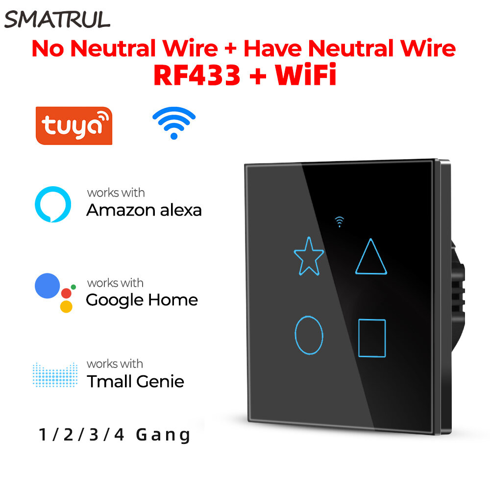 Interrupteur d’eclairage mural intelligent Smatrul LCD ecran tactile Tuya WiFi et telecommande universelle 433 Mhz fonctionne avec Alexa Google Home – rf433 hfy8