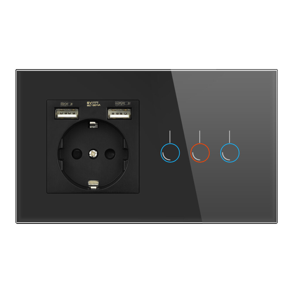 1 x interrupteur e capteur tactile UE avec prise avec USB