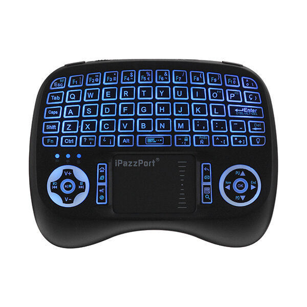 iPazzPort KP-810-21T-RGB espagnol trois couleurs retro-eclaire mini clavier touchpad airmouse