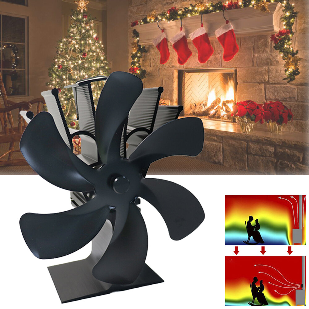 IPRee® YL605 6 Blade Fireplace Fan Heat Powered Stove Fan Wood Burner Quiet Efficient Heat Distribution Fan Home Winter – Black