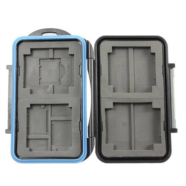 . JJC MC-5 etui pour carte memoire etanche resistant e l'eau La description: L'etui pour cartes memoire de la serie JJC MC est un stockage securise pour vos cartes memoire. Une doublure interieure de protection moulee en caoutchouc protege contre les chocs nocifs, en fixant chaque carte memoire dans le boetier MC. Le joint resistant aux intemperies du boetier de la carte MC empeche les debris indesirables et l'eau de penetrer dans le boetier. Traits: Systeme de verrouillage ergonomique La doublure de protection moulee en caoutchouc protege les cartes Fabrique en resine polycarbonate resistante Joint resistant e la poussiere / e l'eau / aux intemperies eillet moule Dimensions (environ): 115 x 80 x15 mm / L xlx H Compatibilite: 4 x CompactFlash (CF) 2 x Micro SD 2 x SecureDigital (SD) 2 x MemoryStick Pro Duo 2 cartes XDPictureCard (XD) Emballage inclus: 1 x boete de carte memoire JJC MC-5