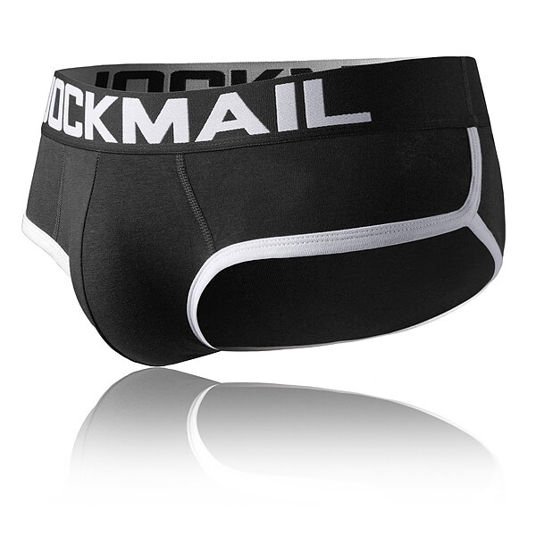JOCKMAIL Mens Patchwork Hip Three Padded Underwear Low Waist U Convex Pouch Briefs – M Black