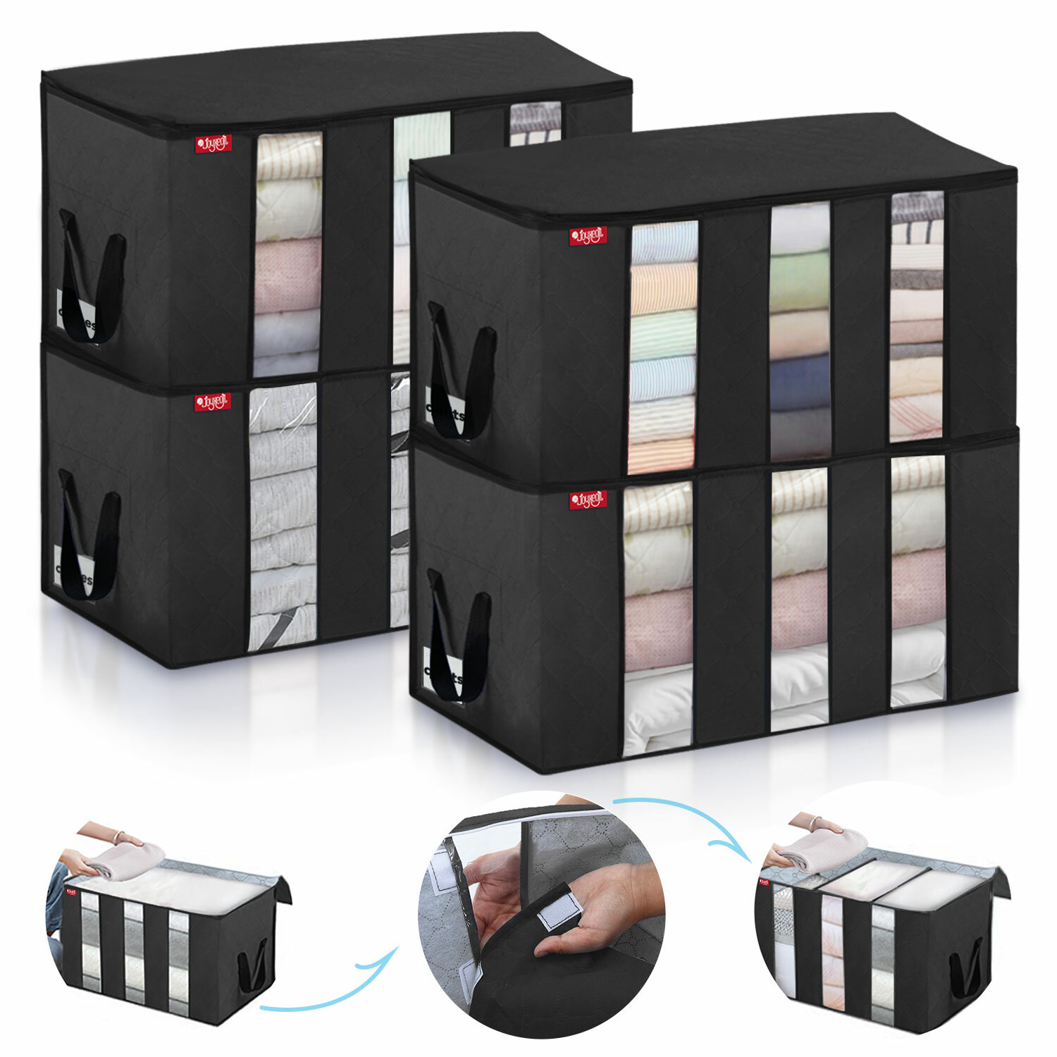 JOYXEON 4PCS Non-woven Fabric Clothes Storage Bag Breathable Moisture-proof Washable Large Capacity Storage Bag – Dark Blue