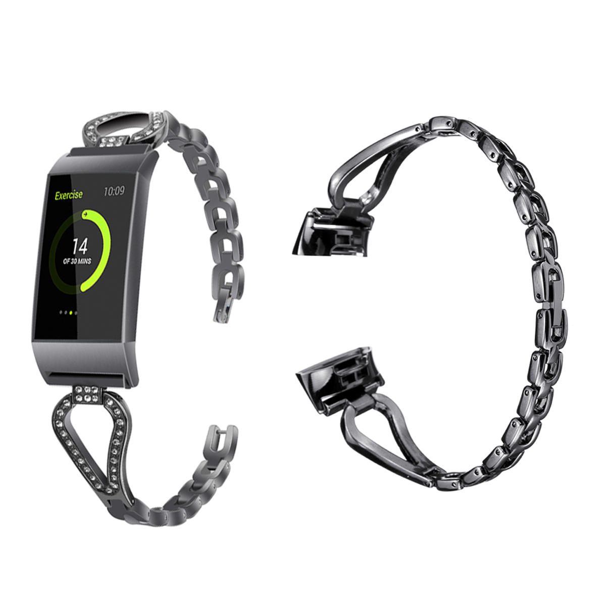 KALOAD Montre en metal Bande Bracelet pour bracelet pour montre intelligente Fitbit Charge 3 – Noir