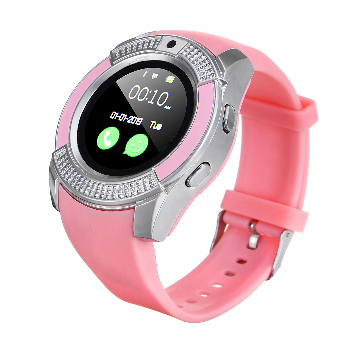 KALOAD V8 1.22in HD Appareil photo Carte SIM Montre intelligente Lecteur audio Chronometre Bracelet de sport Fitness Tracker – rose
