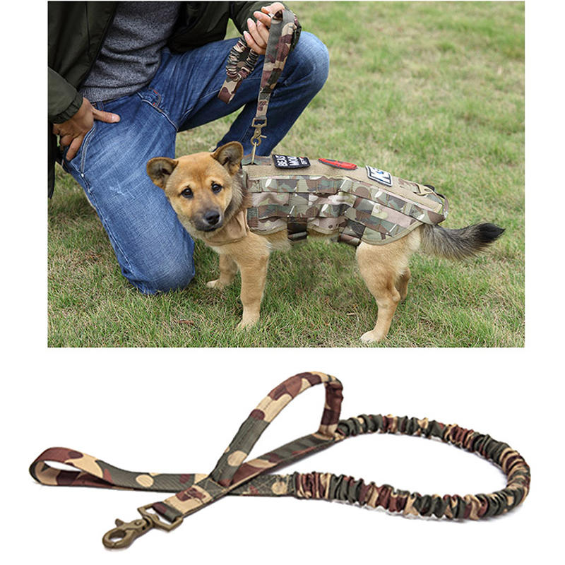 KALOAD ZY035 1000D Nylon Multi-Function Army Training Dog Bungee Leash Hunting Military Tactical Dog Traction Rope – Tan