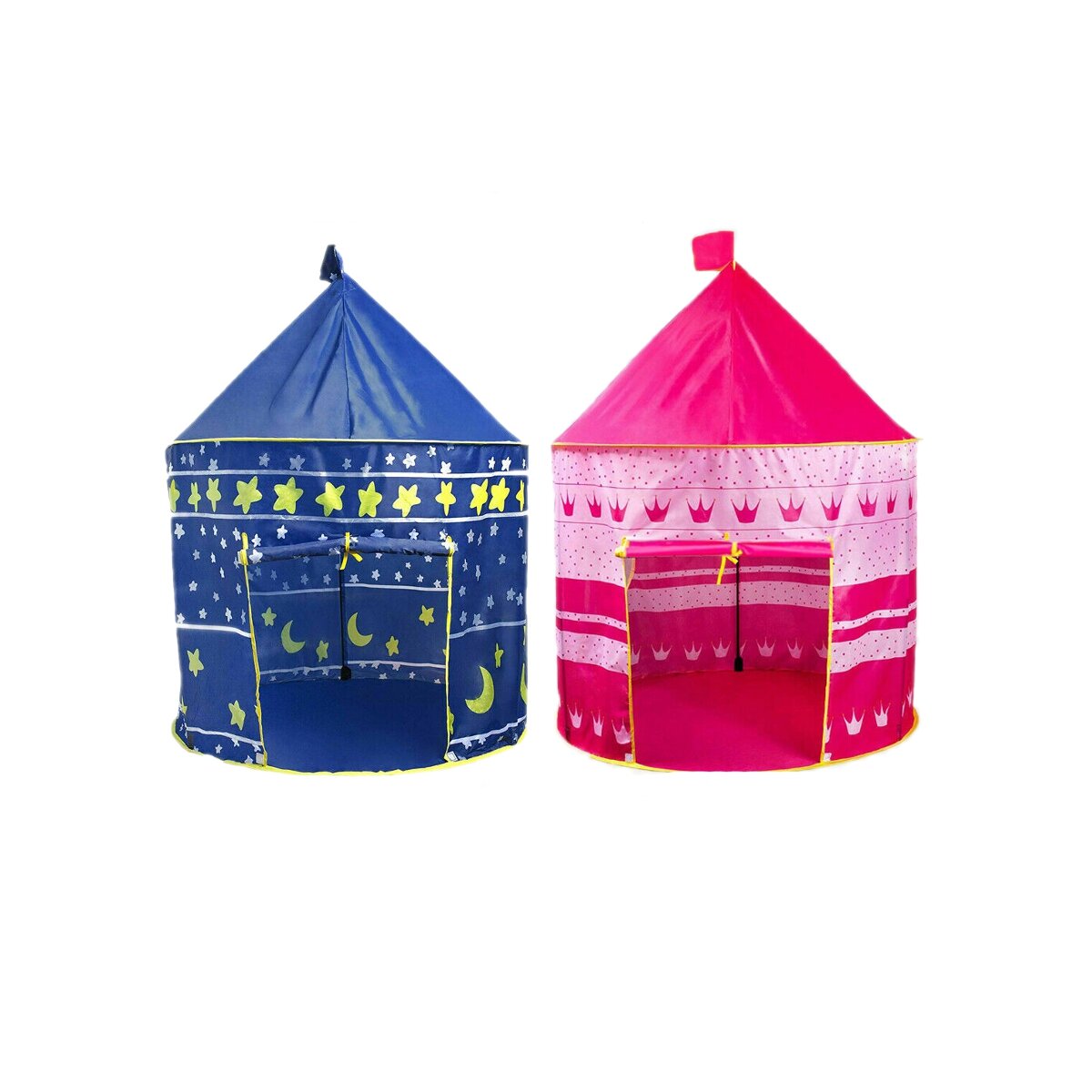 Features :-Each tent has roll up entry door -Ventilated mesh windows to allow air in keep bugs out.-Very quick and easy to assemble and fold down for storage.-Provide a perfectly space for your kids to play dress-up, have fun with friends, or read.-Its lightweight and can be packed inside the carry bag to take anywhere.-Easy to clean, just wipe gently with a damp cloth.