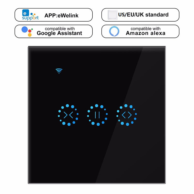 KINGART eWelink interrupteur de rideau intelligent WiFi ue/royaume-uni interrupteur aveugle pour volet roulant moteur electrique Google Home Alexa Smart Home – Noir