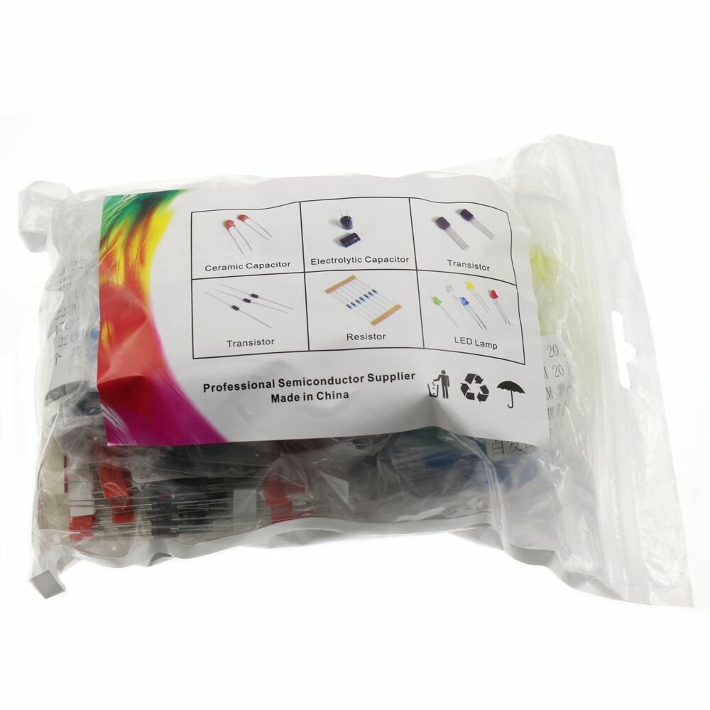 Kit d’assortiment de resistances e Film metallique LED Diodes Condensateur electrolytique Ensemble en ceramique Transistor Pack DIY Kits de composants electroniques