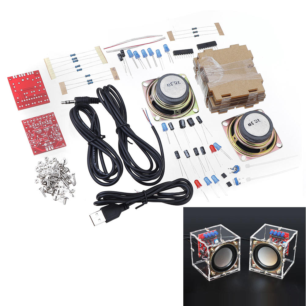 Kit de production de haut-parleurs electroniques bricolage 3W avec coque transparente 2,36 pouces 1 mini kit de bricolage electronique audio pour ordinateur