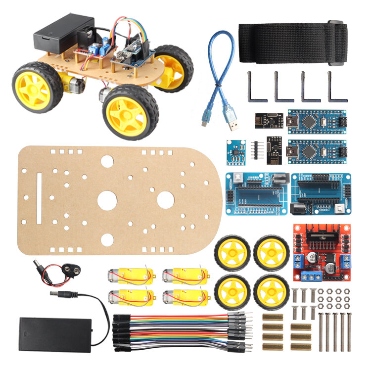 Re : ce kit comprend une methode d'installation, un schema de ceblage, des codes, des laboratoires et des leeons. Apprenez e assembler le kit de voiture robot intelligent et e utiliser le panneau de commande pour se connecter avec le module. La batterie 18650 n'est pas incluse.