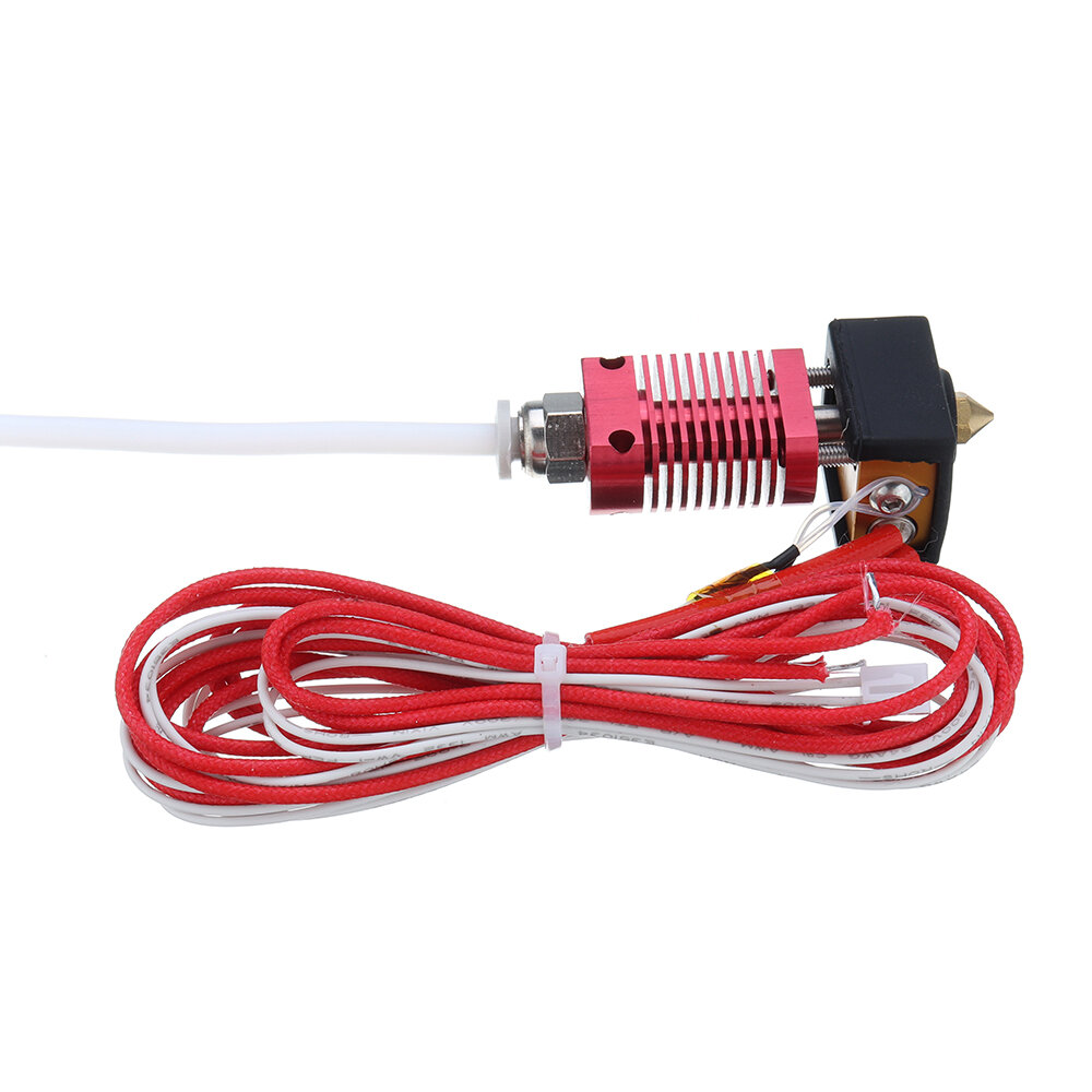 . Traits: Travaillez avec differentes tailles de buse MK8. Vous pouvez changer la buse par vous-meme. Type: MK8 Kit d'extremite chaude d'extrudeuse le fil blanc est une thermistance de temperature, le fil rouge est un tube chauffant 24V 40W. Pointe de la buse, bloc chauffant en aluminium, tuyau de gorge (Teflon integre) Convient pour Creality ender-3 Filament: 1,75 mm Emballage inclus: 1 x Kit d'extremite chaude d'extrudeuse MK8
