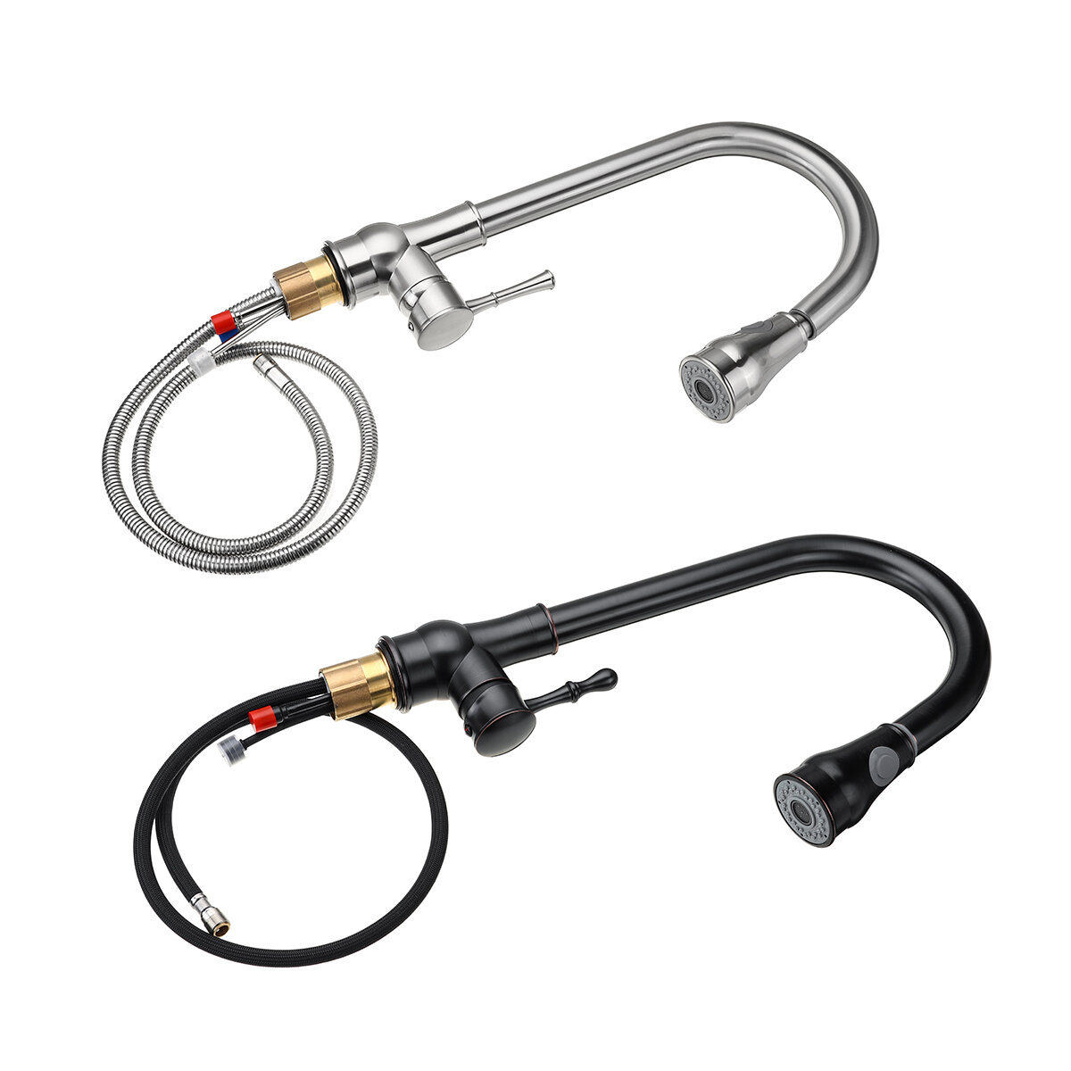 Kitchen Sink Faucet Pull Out Sprayer 360° Rotate Single Handle Mixer Tap Copper – Silver
