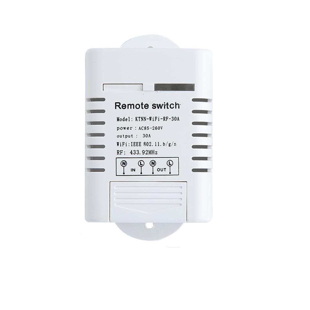 KTNNKG AC85-260V 30A 3000W Commutateur de relais WIFI haute puissance Recepteur 433MHz Gadgets Smart Home Commutateur de telecommande sans fil Le contrele de l’application fonctionne avec Alexa Google Home + emetteur RF noir