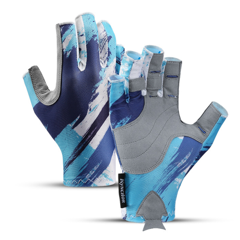 Kyncilor Riding Half Finger Gloves Fingerless Outdoor Sports UV Protection Breathable Fishing For Boating Cycling Sailing Kayaking – Blue M