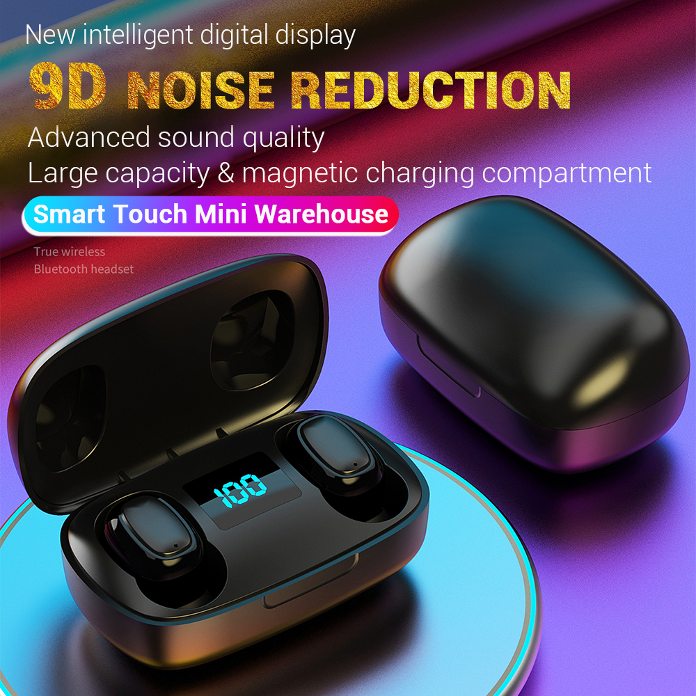 L12 HIFI Wireless Headset Bluetooth 5.0 Dual Sports Headphone 3D Stereo Portable Magnetic with Charging Case black
