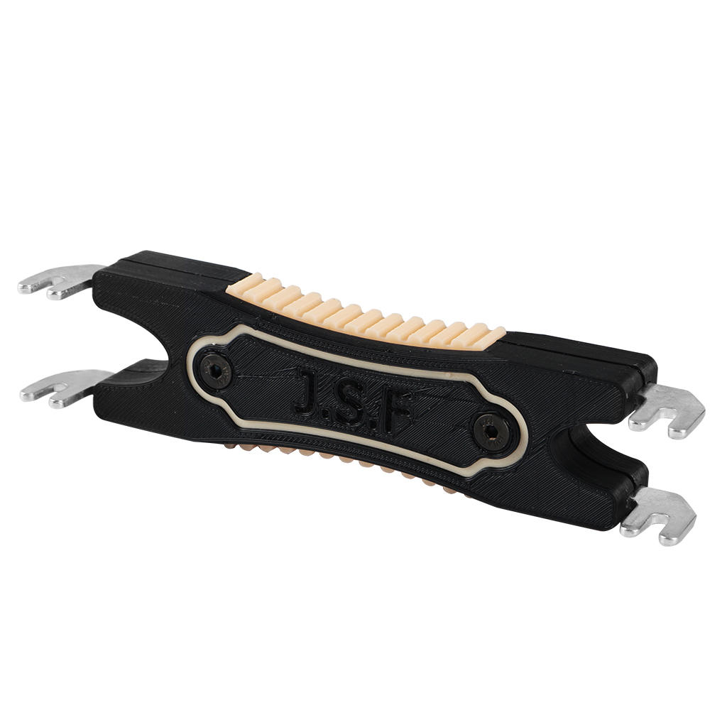 Vous n'avez pas le temps d'imprimer votre propre outil? Pas de soucis, vous pouvez acheter l'outil deje imprime et pret e etre utilise. L'outil est imprime en PLA + noir avec le remplissage recommande, ce qui lui confere la resistance requise. Les poignees laterales et les bords superieurs sont egalement imprimes en filament TPU, ce qui vous donne une sensation plus naturelle.