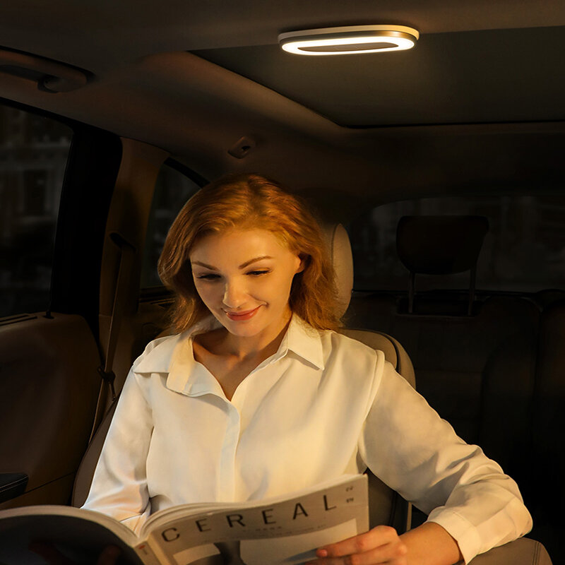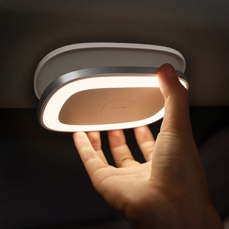 Lampe de lecture de voiture magnetique Baseus LED lampe de plafond de toit automatique lumiere ambiante de voiture Rechargeable pour eclairage de secours pour coffre de voiture – Blanc