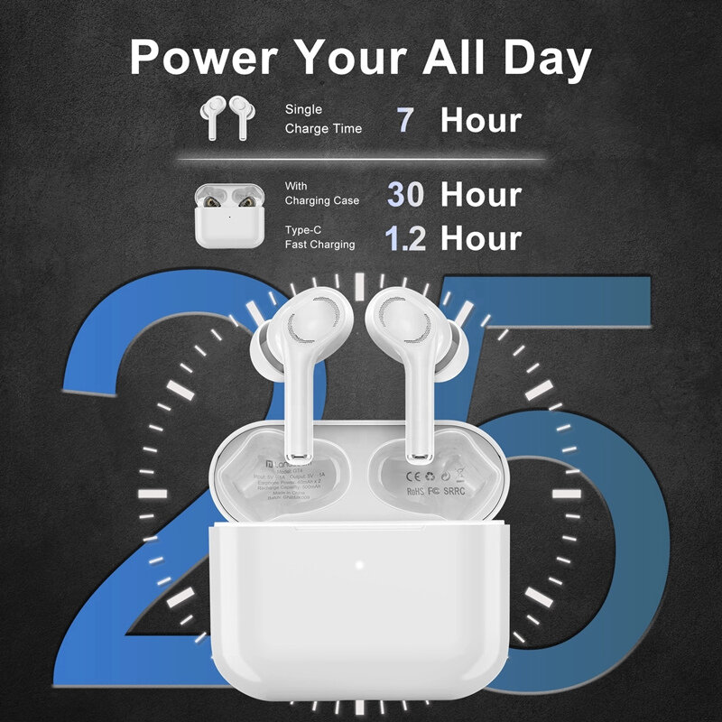 Langsdom GT4 Mini TWS casque bluetooth 5.0 HIFI son double pilote dynamique ecouteurs etanches – Blanc
