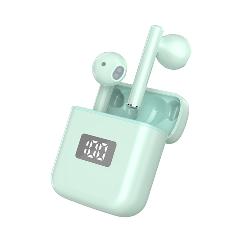 Langsdom T18 TWS Bluetooth 5.0 Casque Casque sans fil LED Affichage longue Batterie Vie HiFi Stereo Basse puissante ecouteur e faible latence avec micro – Vert