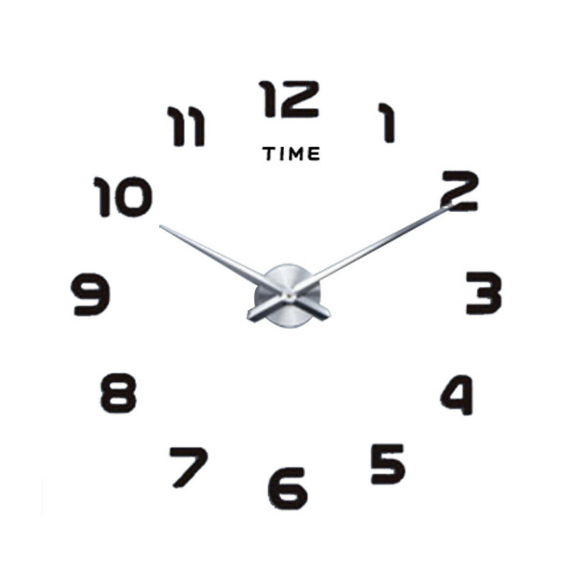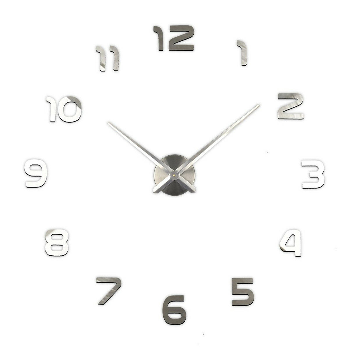 Large 3D Number Mirror Wall Sticker DIY Home Decor Big Watch Art Clock Wall Clock – Silver