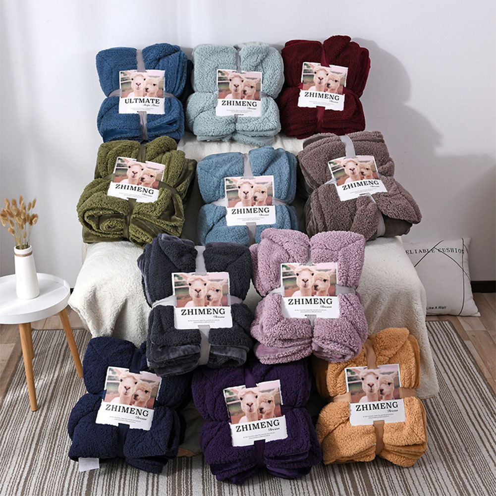 Large Warm Thick Sherpa Throw Blanket Solid Color Coverlet Reversible for Bed Couch Winter Housewarming Gift Agate green