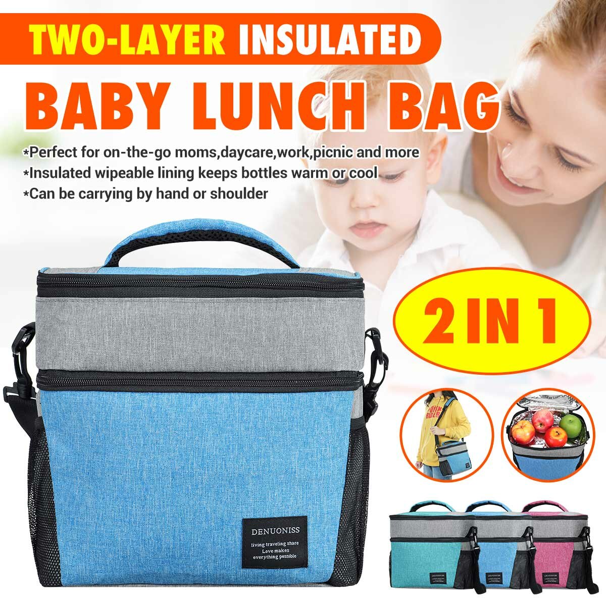 Features:-PORTABLE DESIGN & LIGHTWEIGHT:-The cooler bag's size fits for all moms and women; It can be carried by hands or your shoulder conveniently and fashionably.-The Cooler bag locks in the cold while keeping your breast milk free of bacteria and full of the key nutrients your baby needs for healthy development.-Perfect for daycare, work, picnic, and more.-INSULATED DOUBLE LAYERS:-Insulated wipeable lining keeps bottles warm or cool. There is two layers of space; the First layer can be used for some small objects; such as a drinking bottle or milk suction device. Second layer for storing breastmilk for your baby when you are out. such as bottles.-COMPLETE SET EFFECTIVELY KEEP FRESH:--Convenient ice pack for on-the-go moms.-Contoured shape fits around breastmilk bottles perfectly and safely stores fresh breast milk for up to 12 hours(Use with ice bags. but not included).-MULTIFUNCTIONAL COOLER BAG OR FOOD STORAGE:-This cooler bag is also suitable for your carrying lunch food, which is with insulation material; Also, it perfects for your family picnic; If you want, you can take it as a handbag when you are out.
