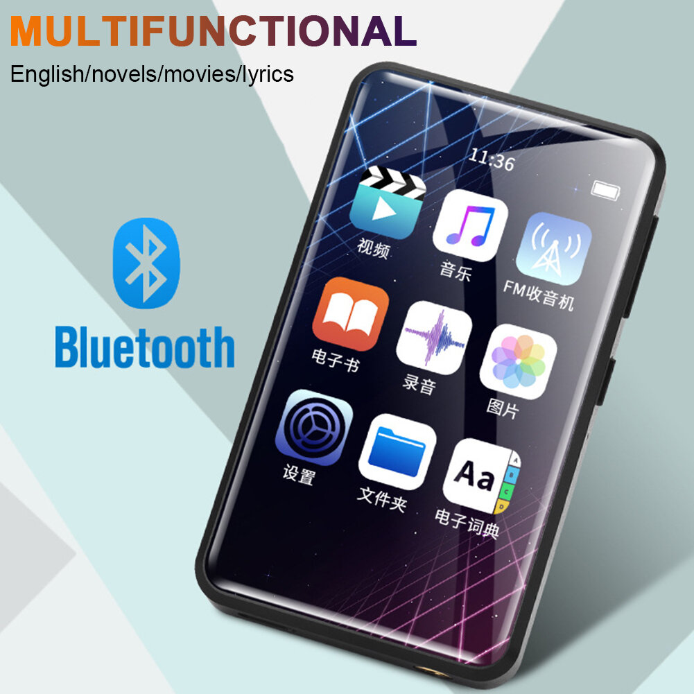 Lecteur video de musique portable 2,4 pouces bluetooth ecran tactile complet HiFi son sans perte lecteur MP3 MP4 – Noir