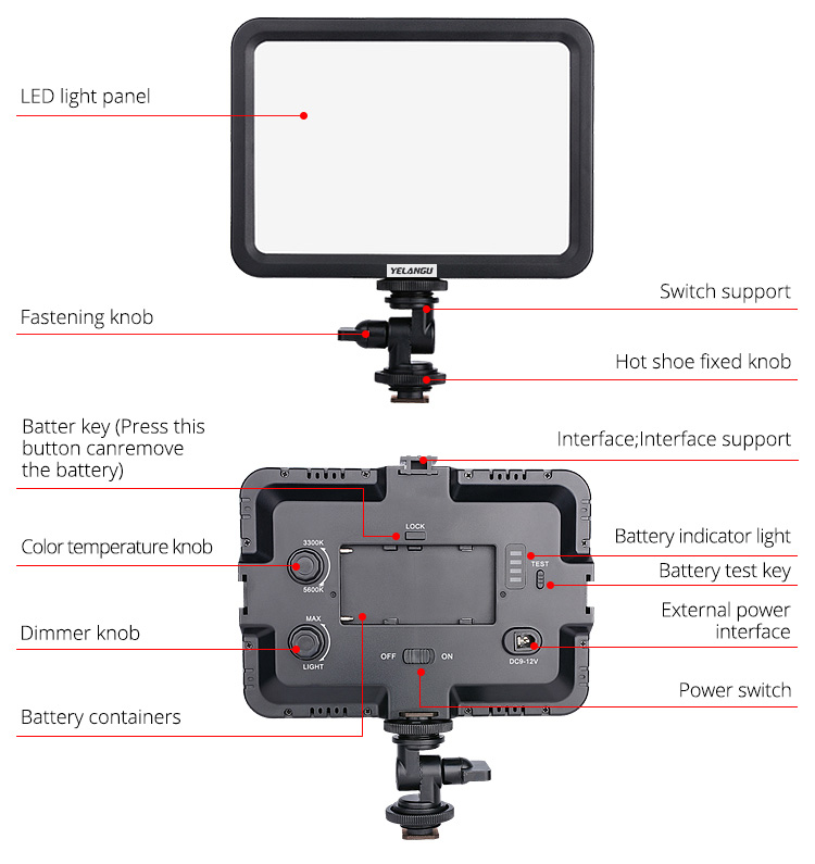 LED Camera Light Stepless Dimming Fill Lamp Photograph Flashes Lights Wedding for black