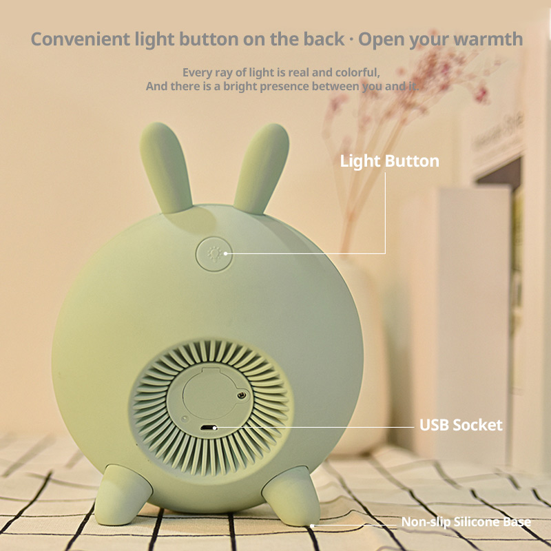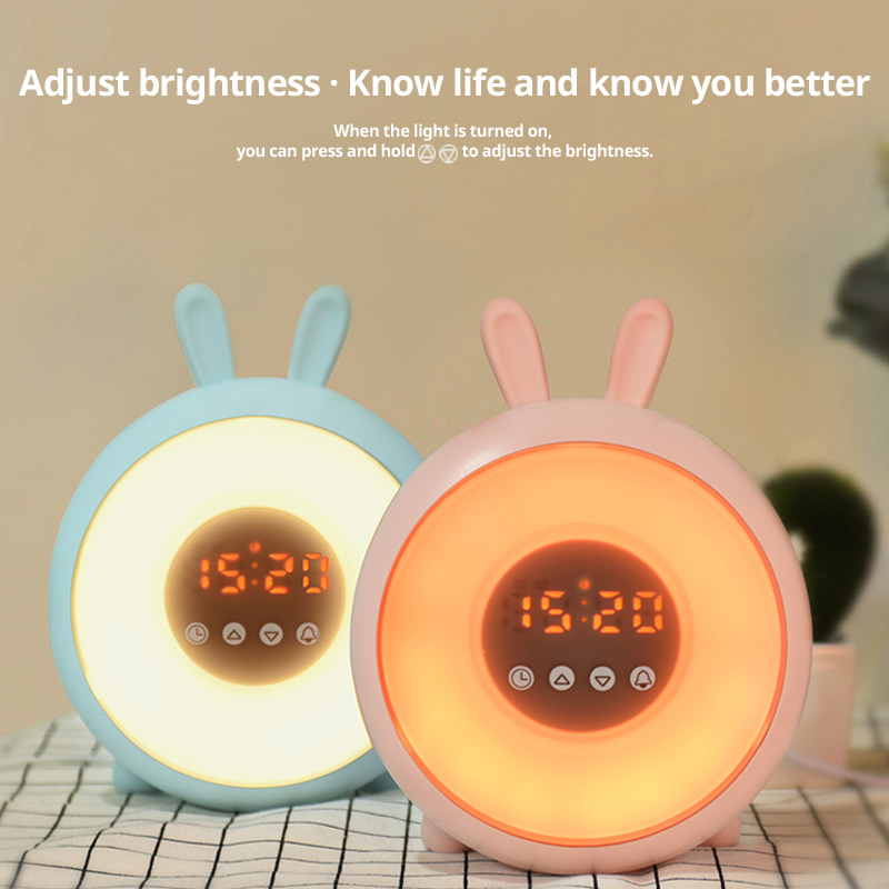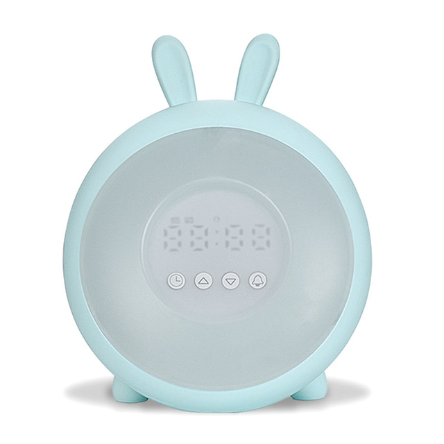 LED Rabbit Dream Time Sleeping Wake up Light Desk Bedside Alarm Clock Lamp Rechargable for Bedroom Decoration blue