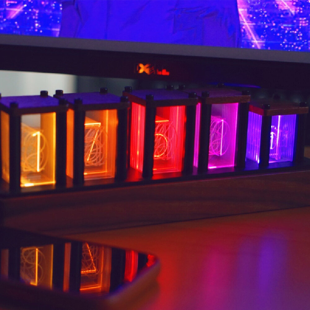 LED RGB Pseudo Glow Tube Horloge numerique Style nordique Assemblee de bureau Decoration de noyer