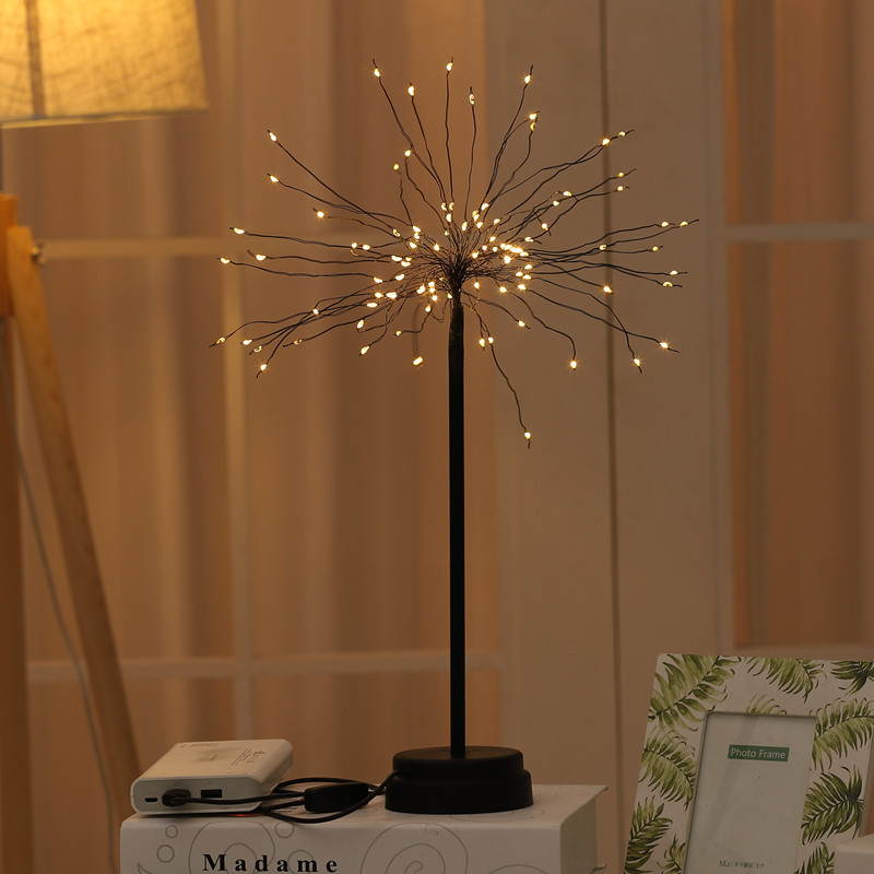 LED Solar Dandelion Shape Copper Wire Fireworks Night Light for Christmas Decoration 100 lights fireflies -USB models quantity