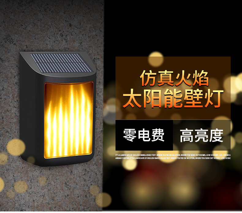 Led Solar Wall Light Outdoor Waterproof Rechargeable Landscape Flame warm light