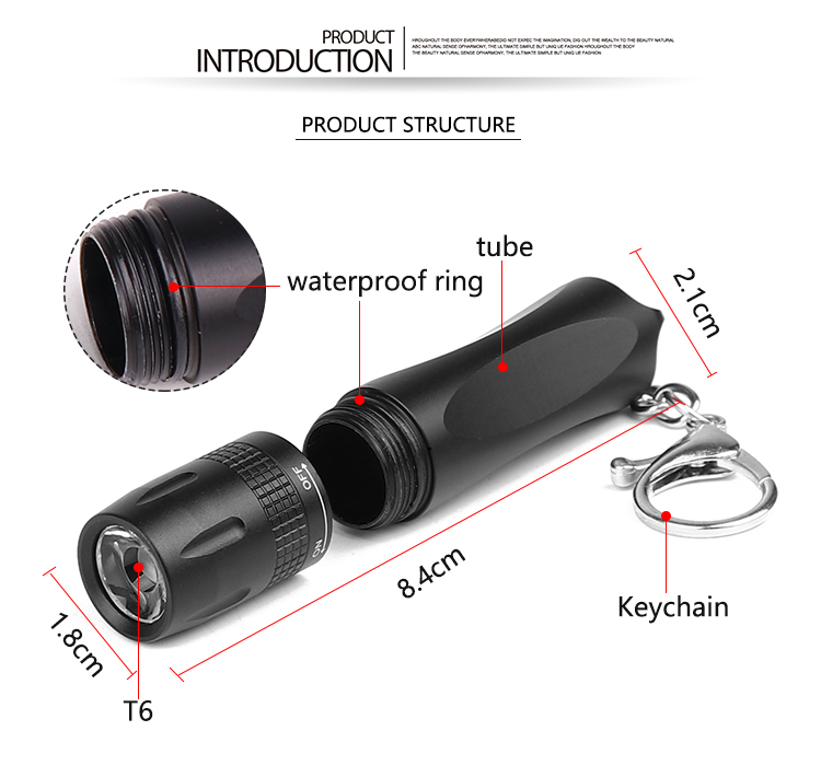 LED T6 Mini Flashlight Keychain with Hanging Buckle for Outdoor Use black_Model 1464