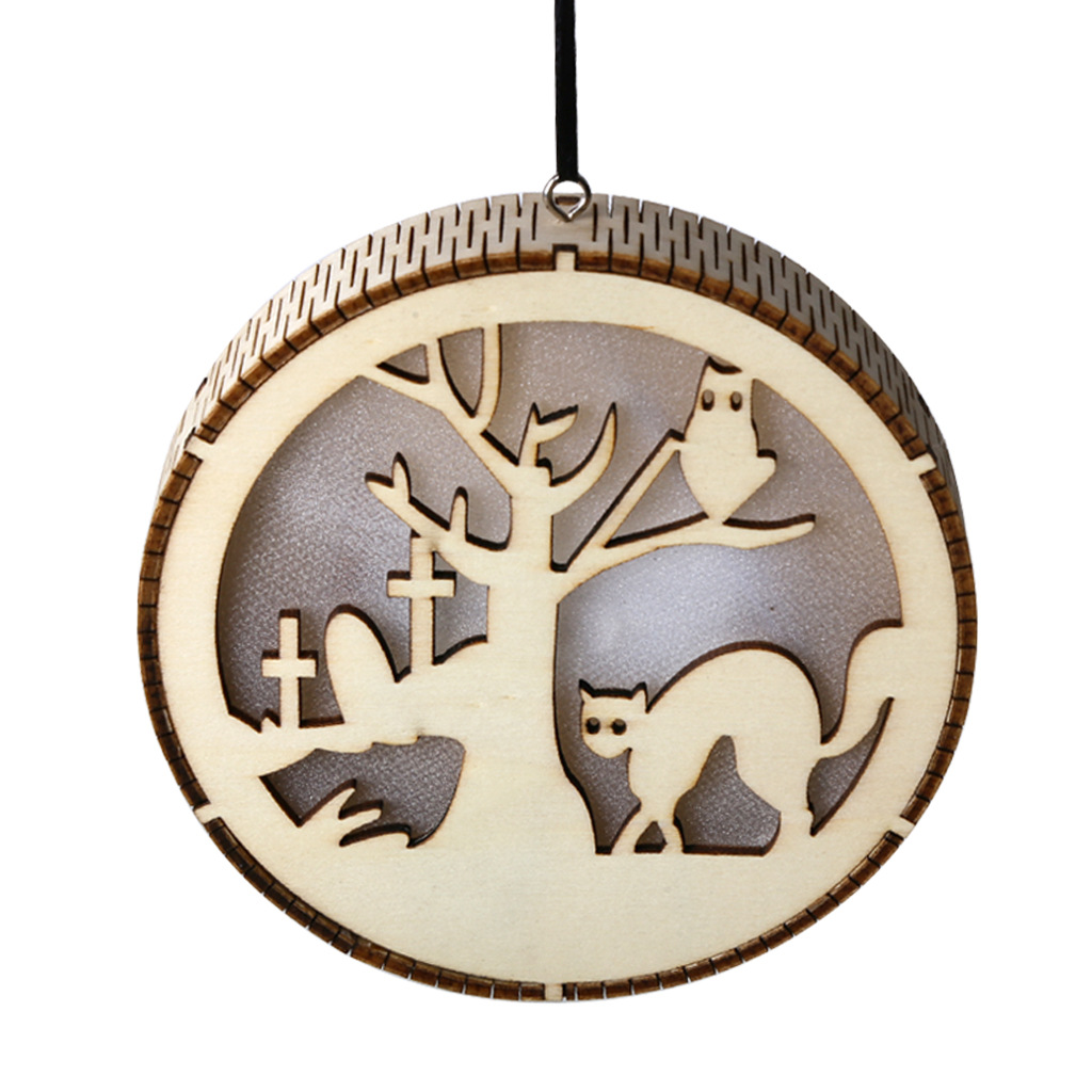 LED Wooden Hollow Light Round Shape Hanging Pendant Holiday Party Decorative Night JM01490