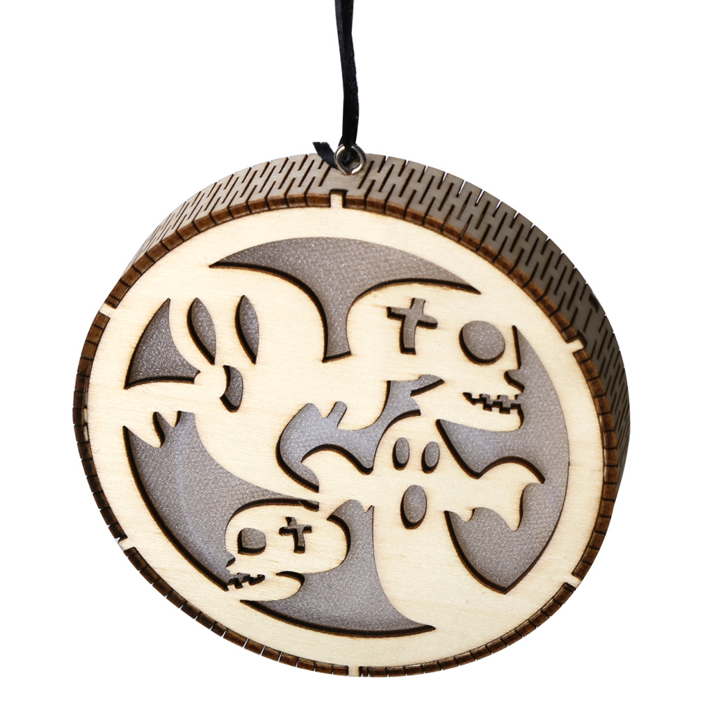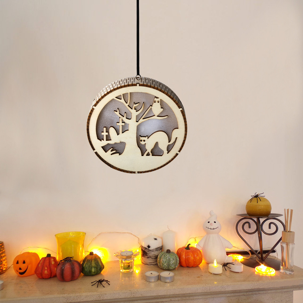 LED Wooden Hollow Light Round Shape Hanging Pendant Holiday Party Decorative Night JM01492
