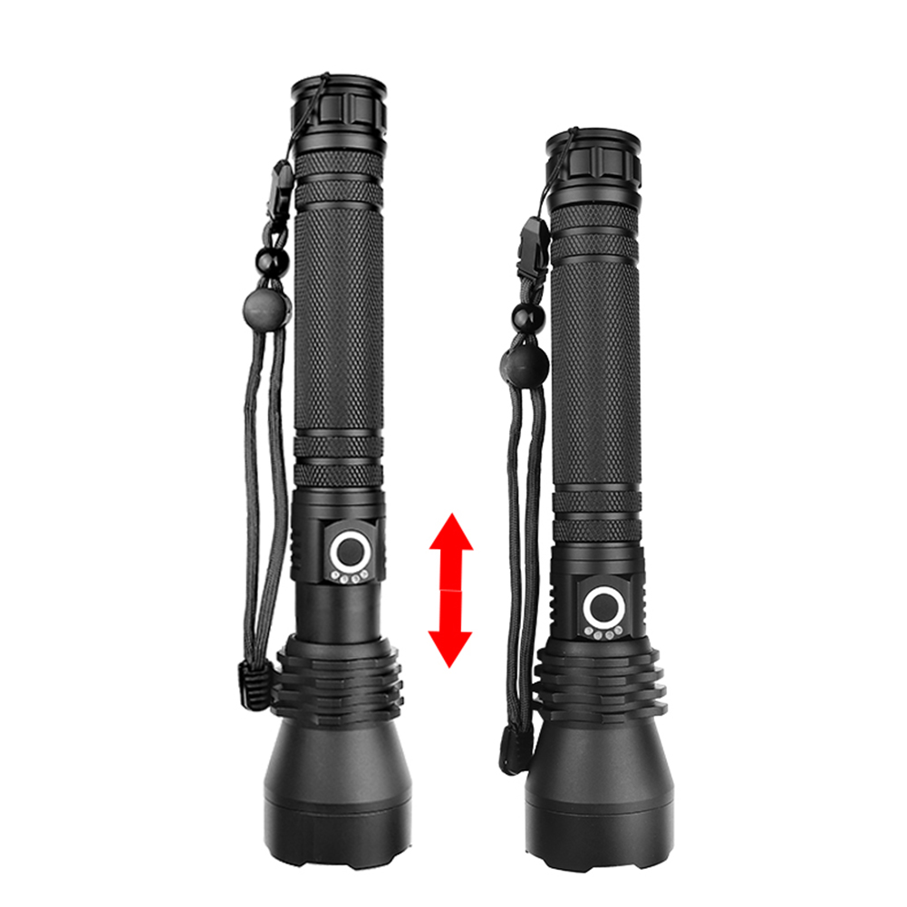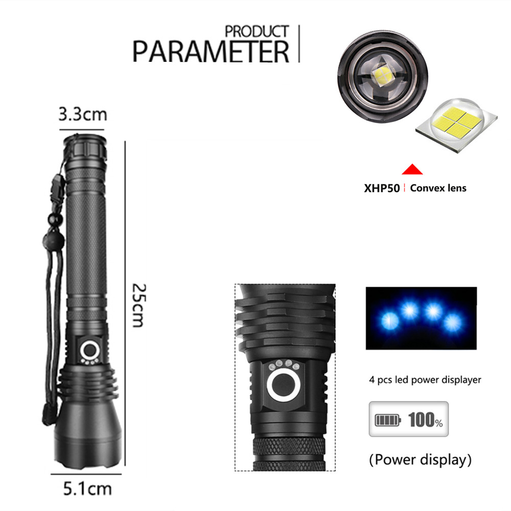 LED XHP50 Highlight Flashlight Zoomable Aluminum Alloy Torch with Power Display Positive white light