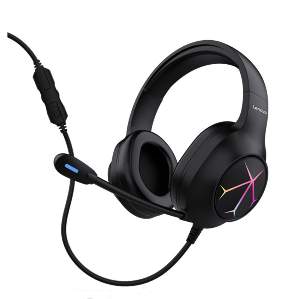 Lenovo G60 Casque de jeu filaire 7.1 Casque de jeu intra-auriculaire stereo e lumiere bleue avec micro USB antibruit pour ordinateur portable – Noir