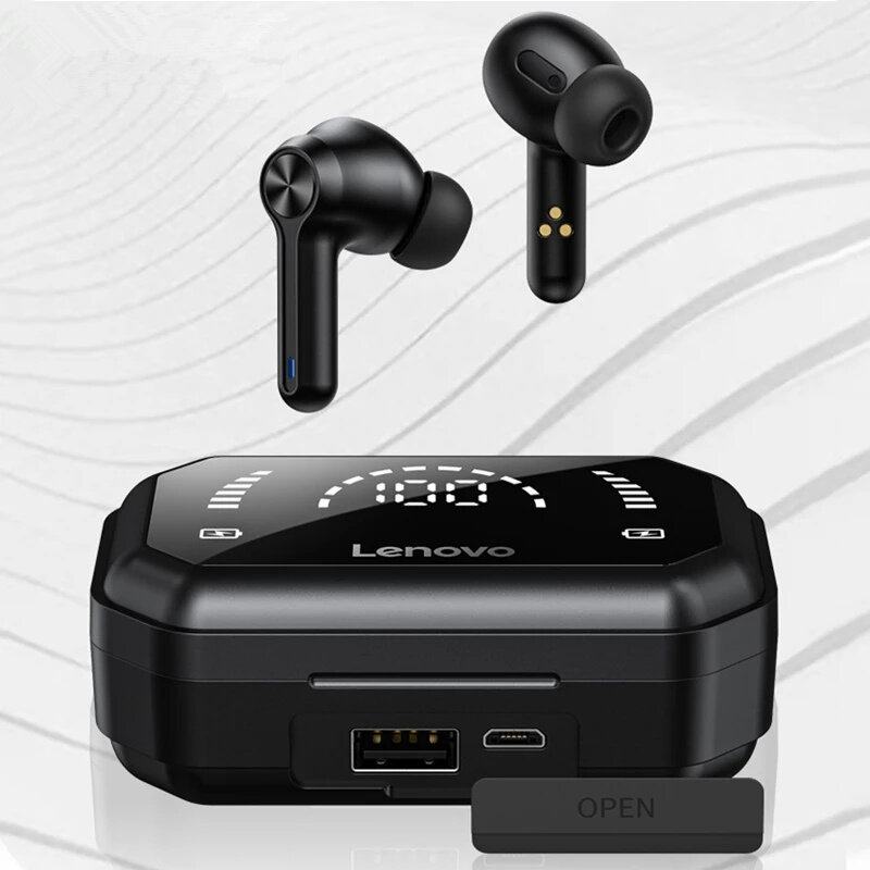 Lenovo LP3 Pro TWS Bluetooth 5.0 ecouteurs Double Pilotes HiFi Stereo 1200mAh LED Affichage de l’alimentation Micro antibruit ecouteurs de sport Casque sans fil – Noir
